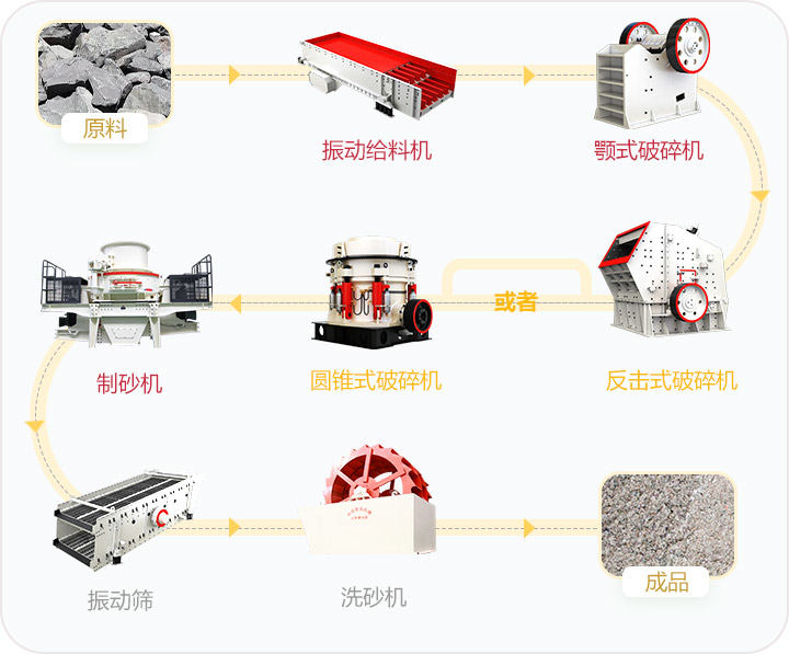 3、之后是利用制砂設備進行礦物的細碎整形;最后是用洗砂機進行洗選作業,使成品砂石料看起來更清潔,級配更高。不過該段工序用戶可根據自身加工的礦物情況和生產具體要求進行具體的加減。
